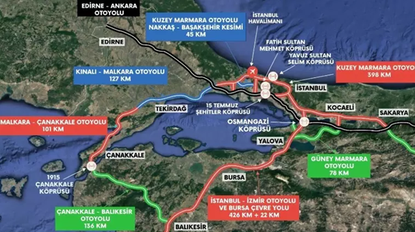 Ulaştırma ve Altyapı Bakanı Abdulkadir Uraloğlu, Güney Marmara Otoyolu Projesi ile Kocaeli, Bursa ve Sakarya gibi sanayi kentlerinin birbirine bağlanacağını söyledi. Toplam 78 kilometre uzunluğundaki Güney Marmara Otoyolu’nda 14 kavşak, 8 tünel, 9 viyadük ve 51 köprü inşa edilecek.