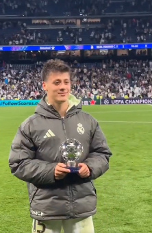 Maçın oyuncusu seçildiğini yetkililer tarafından öğrenen Arda Güler büyük şaşkınlık yaşadı. Genç futbolcunun çağrılırken yetkililere verdiği tepki sosyal medyada büyük ilgi gördü. O anlar kameralara yansırken, Şampiyonlar Ligi'nin resmi sosyal medya hesabı genç futbolcunun tepkisini paylaşarak, "Arda Güler'in şaşkın ama hak edilmiş anı!" notunu düştü. Şampiyonlar Ligi resmi hesabının paylaştığı o anlar yüz binlerce beğeni aldı.
